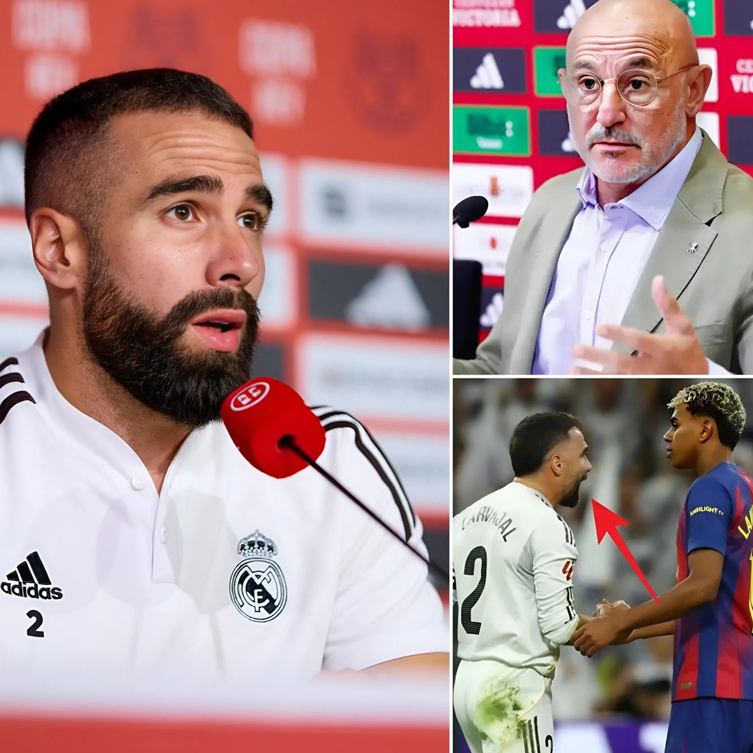In a shocking turn of events following the dramatic El Clásico between Real Madrid and Barcelona, Lamine Yamal, Barcelona’s rising young star, has found herself at the center of a heated controversy. Immediately after the match, Yamal reportedly insulted Dani Carvajal, the veteran Real Madrid and Spanish national team player, triggering a storm of repercussions. Carvajal, visibly upset by the remarks, wasted no time filing a formal complaint with the Royal Spanish Football Federation (RFEF), demanding that Yamal not be selected to play for Spain again.